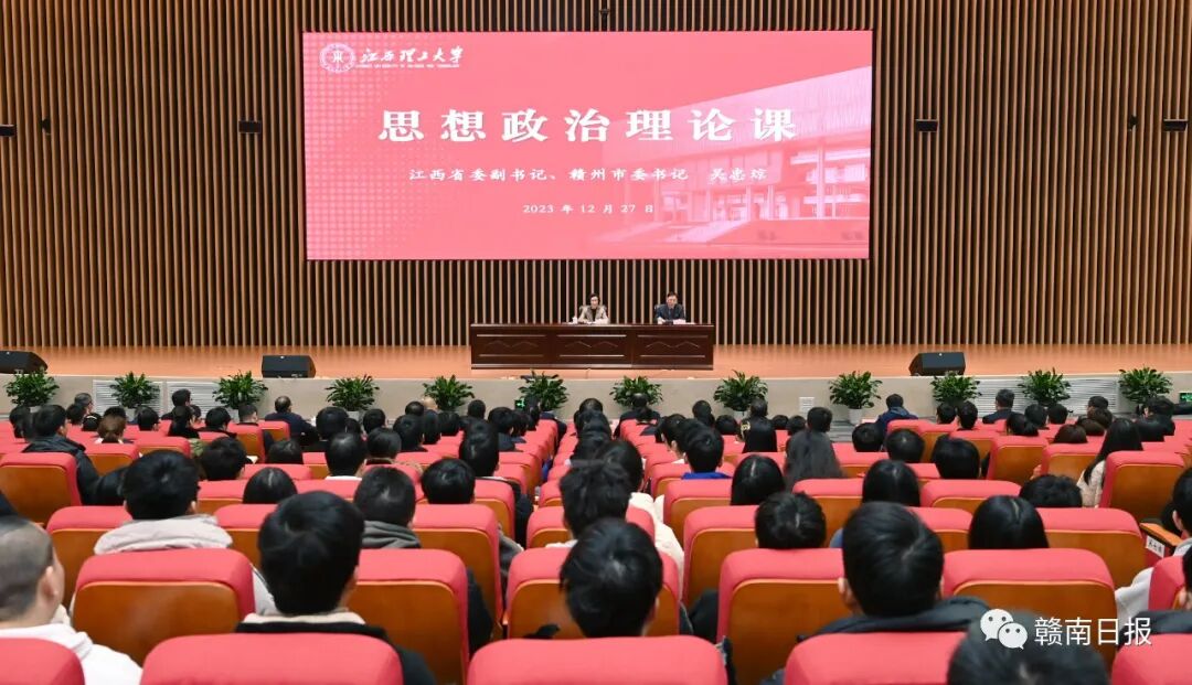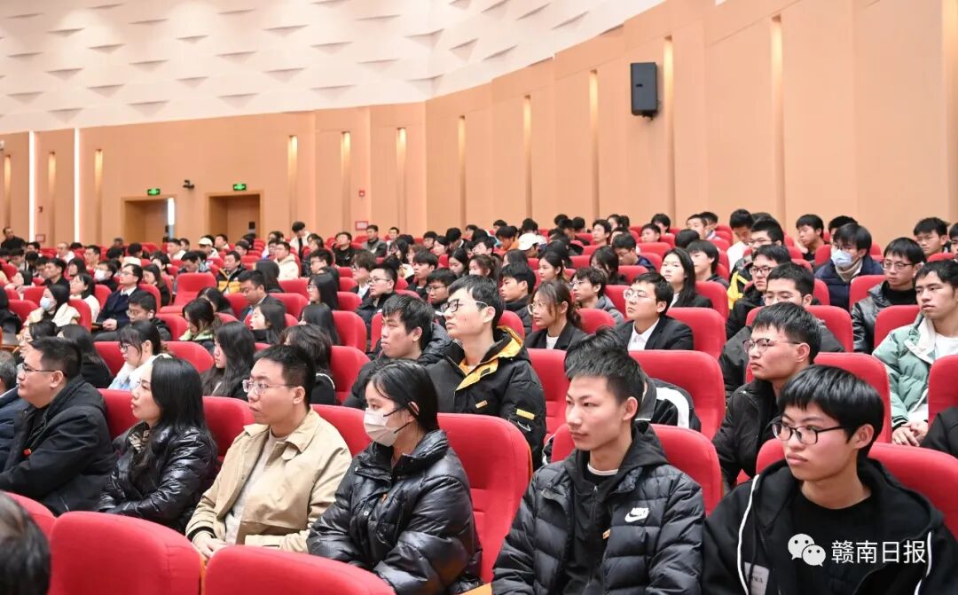 省委教育工委委员、省教育厅总督学曹伴好,驻市、市属高校主要负责同志,以及江西理工大学师生代表约500人到场聆听。